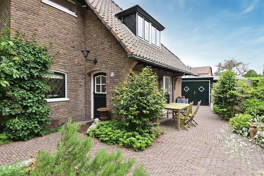 In de achtertuin bevindt zich de grote, verlengde garage, waarvan de dakbedekking in 2019 is vernieuwd.